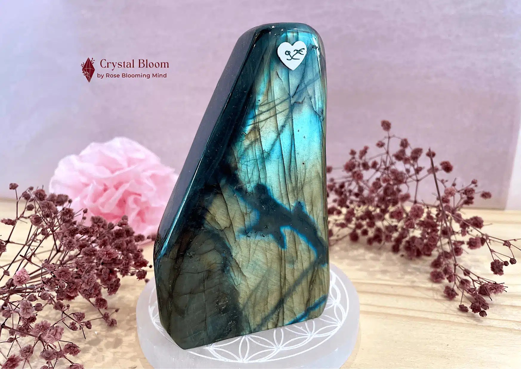 Labradorite 100% naturelle, éthique, de qualité Extra. Elle est associée principalement à la protection, l’harmonie et l’intuition.